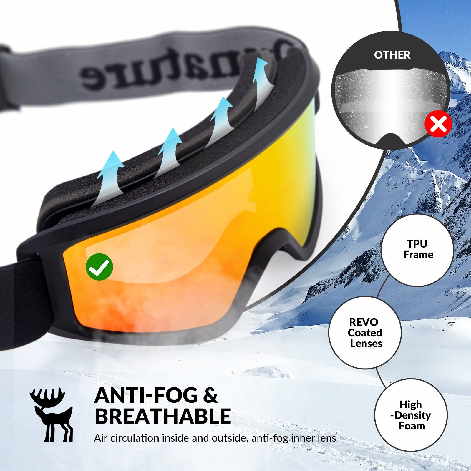 Quantute Anti-Fog Ski Goggles with Double Lens – Clear vision without fogging, comfortable & safe. In 3 colors for skiing, snowboarding & Winter sports.