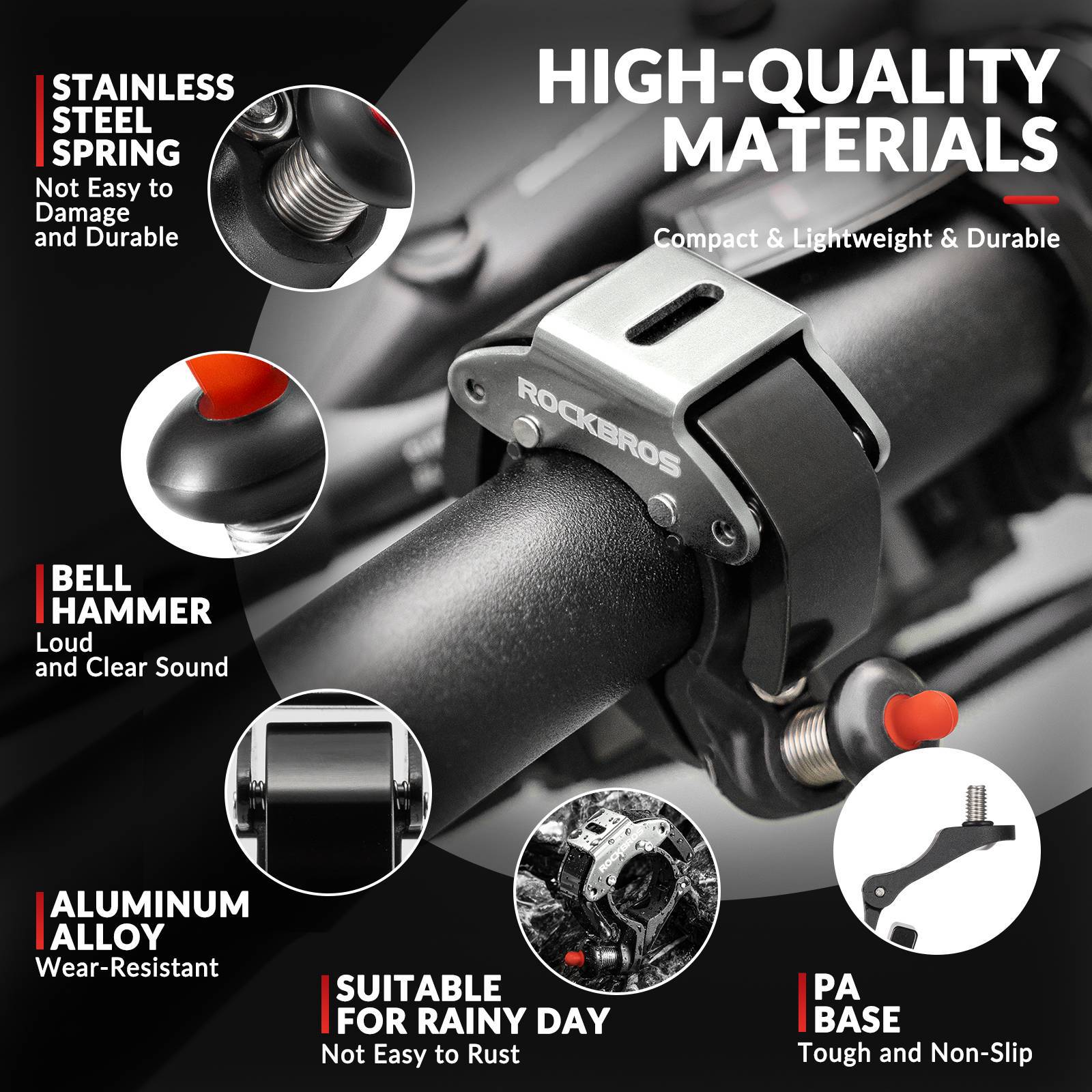 • HIGH-QUALITY MATERIAL:The bell is made of aluminum alloy and stainless steel, making it rust-resistant. The PA base and non-slip washer are durable.