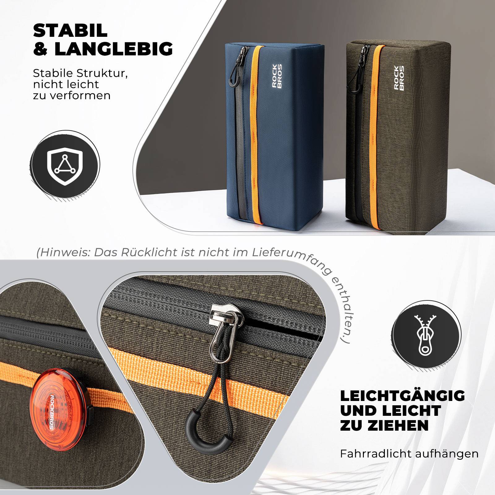To protect your belongings, the front handlebar bag features a triangular design. It won't easily deform, even when empty, and maintains its shape. A reflective logo enhances safety while riding at night.