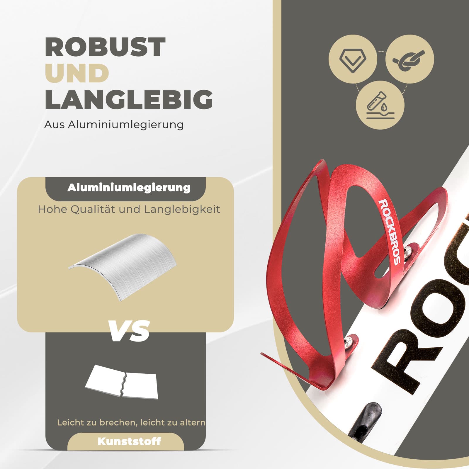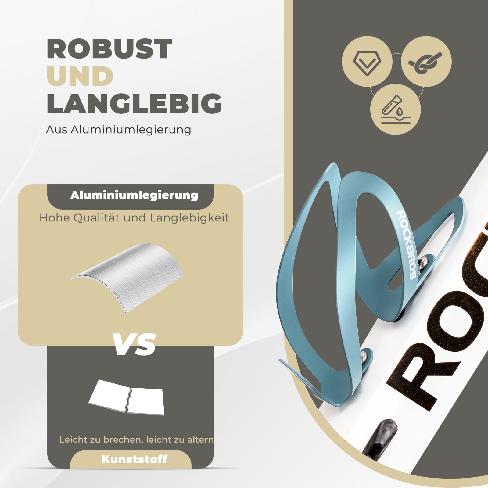 Robustness and Durability: The ROCKBROS bicycle bottle cage is cast in one piece from a high-quality aluminum alloy. It offers high strength, good corrosion resistance, and is not easily deformed, ensuring a longer lifespan.