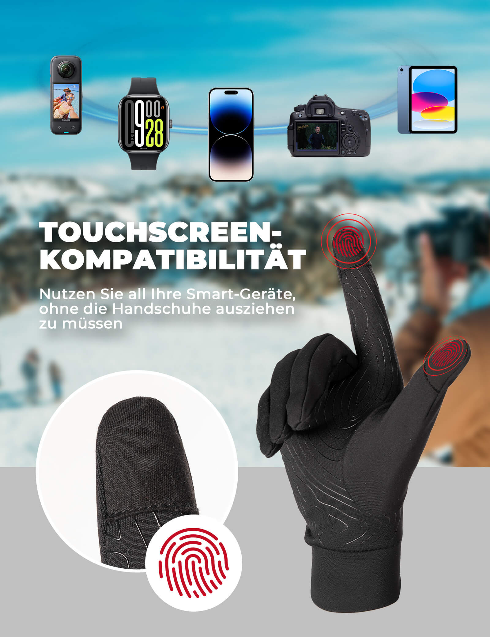 Special fingertips allow you to operate smartphones and GPS devices without removing your gloves. Ideal for navigation and music control while riding.