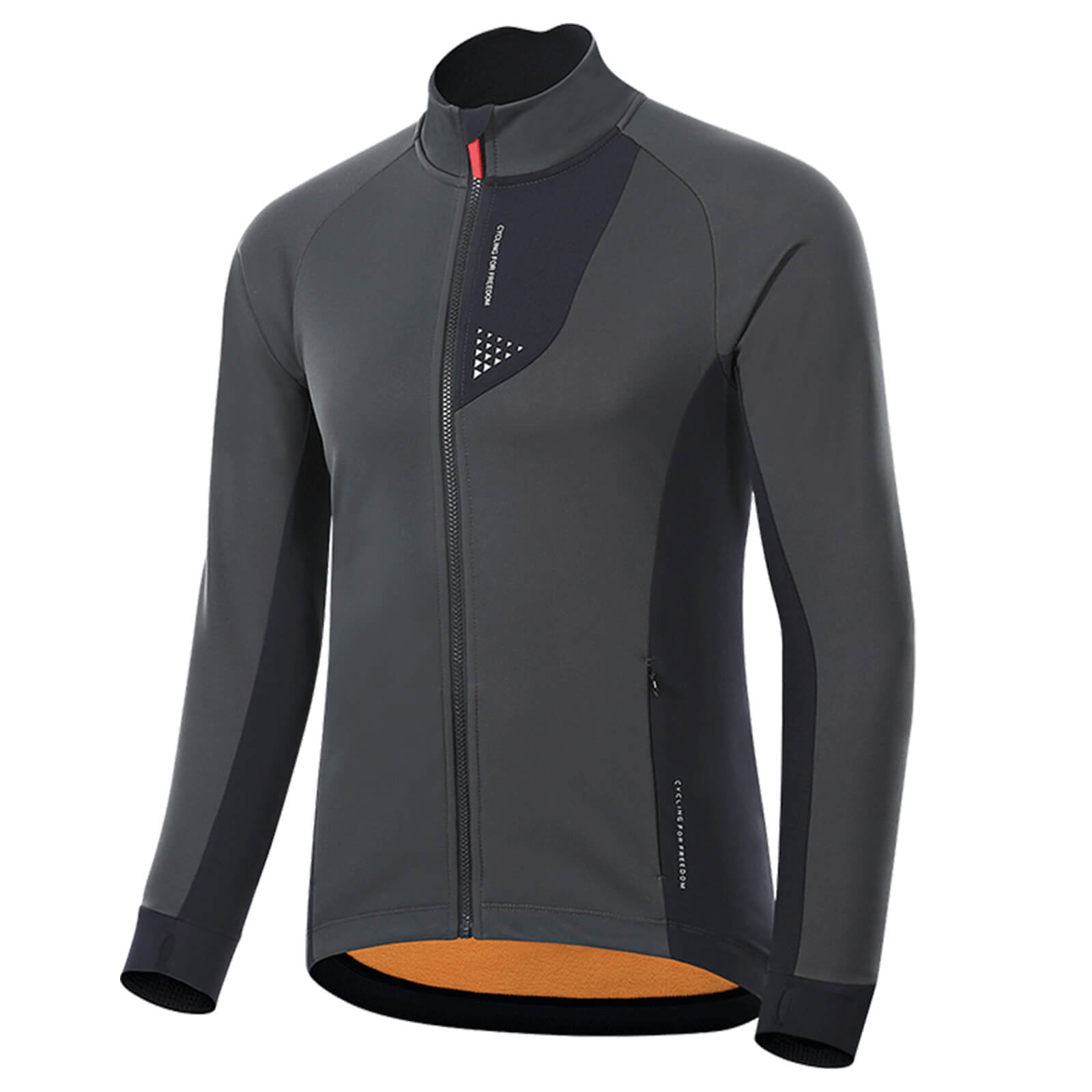 The ROCKBROS men's winter cycling jacket offers wind protection and breathability, along with a warm fleece lining for cold days on the bike or while running. Available in sizes M-4XL, the jacket is ideal for mountain biking or running.