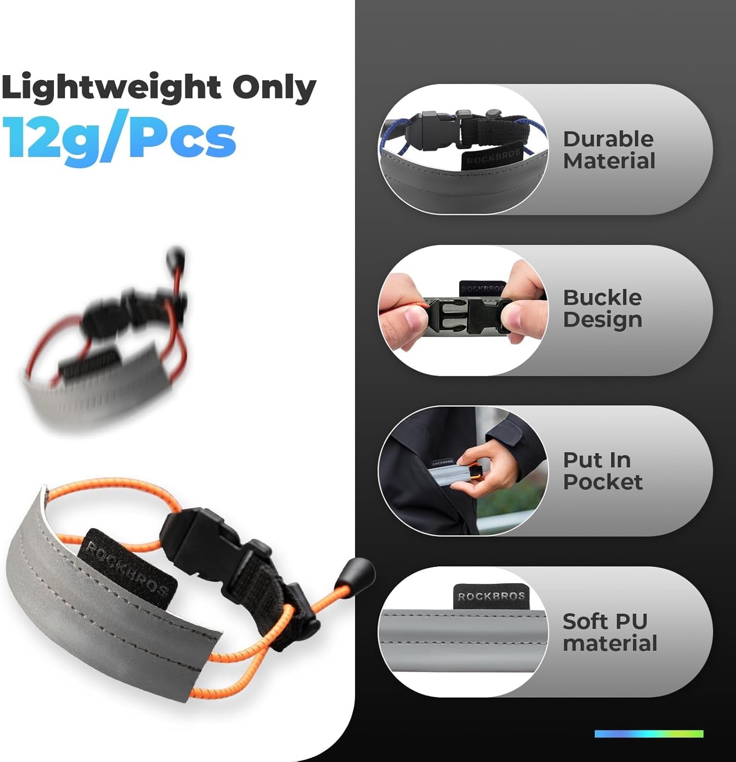 ROCKBROS Reflective Band Elastic Trouser Clip Bicycle Trouser Protector Reflective Trouser Band for Outdoor Jogging Cycling Running 1 Pair